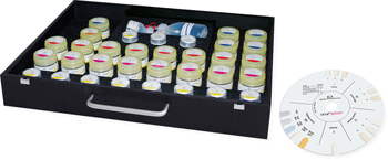 Set for veneering alloys that have a high CTE value (CTE range of 15.9 · 10-6 K-1 - 17.0 · 10-6 K-1 at 25 °C - 500 °C / 77 °F - 932 °F). Contains the 8 most important A–D shades, Paste Opaque, Base Dentins, Dentins, Incisal and modifiers.